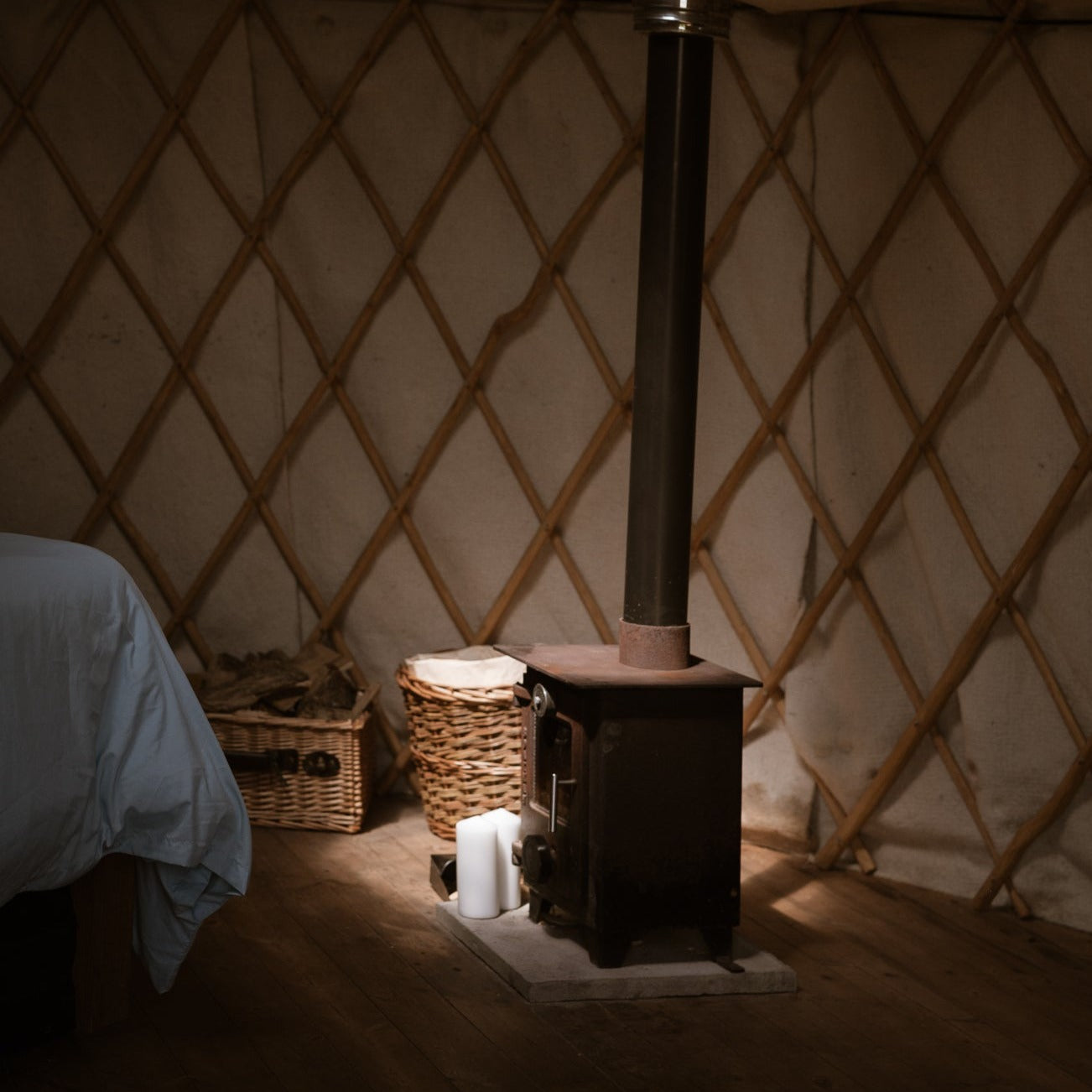 moreCosy hut, with wood burner and double bed, sharing access to the Farmyard facilities including fire-pit and pizza oven.