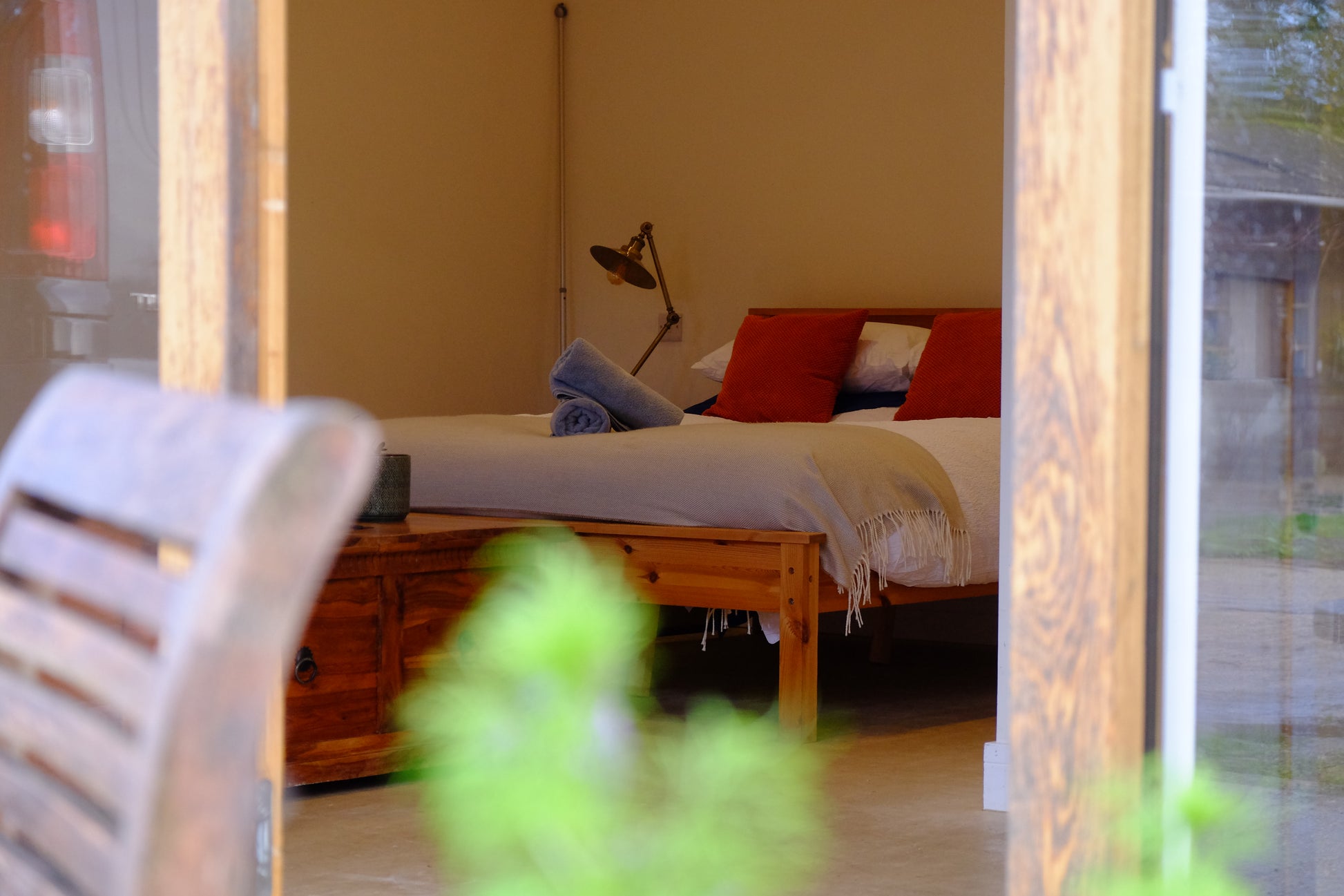 We have converted our old pig sheds into 3 beautiful, modern cottages which share the wide open cattle yard space and surrounding fields with the yurt and shepherds hut. The cottages are completely powered by renewable energy (solar with air sourced heat) and also have wood burning stoves. They are all on the ground floor, with an open plan living space, living area, and double sofa bed. There is a kitchen area in each with electric oven, electric hob and fridge/freezer, a bedroom area: with king size bed, and a bathroom: With bath / shower, and toilet.